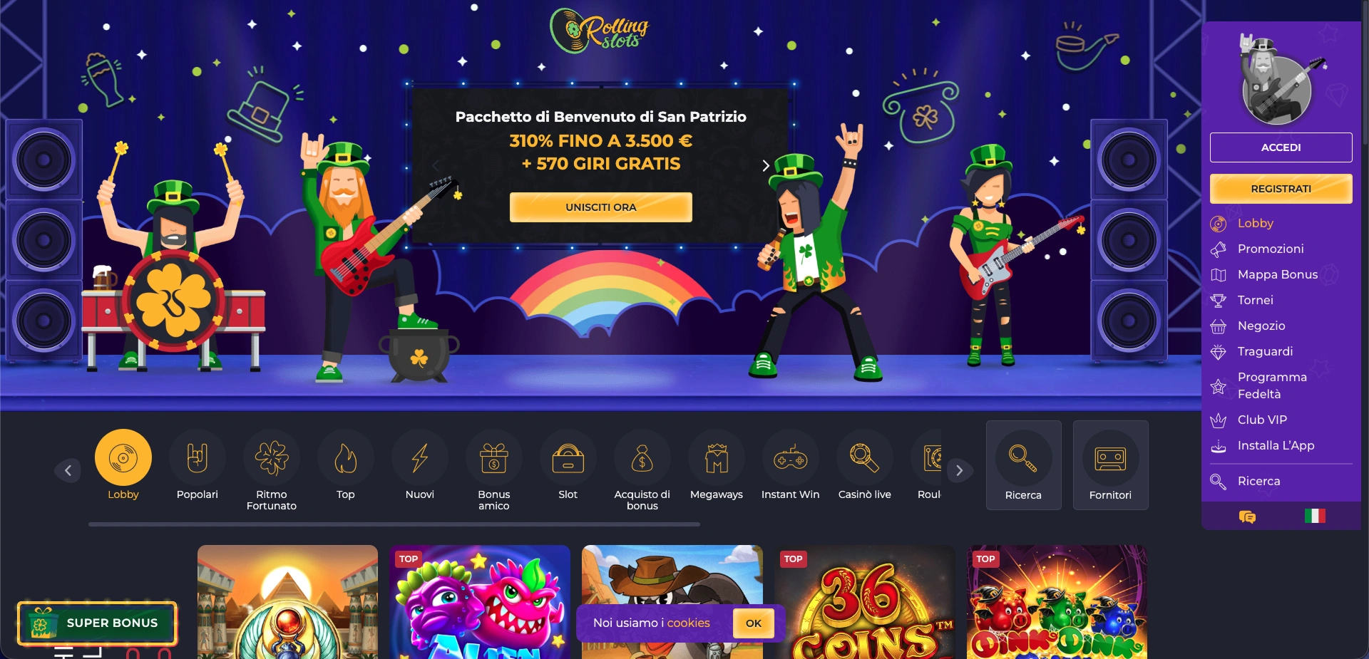 2. Rolling Slots – Il Bonus più Generoso tra i Casinò non AAMS